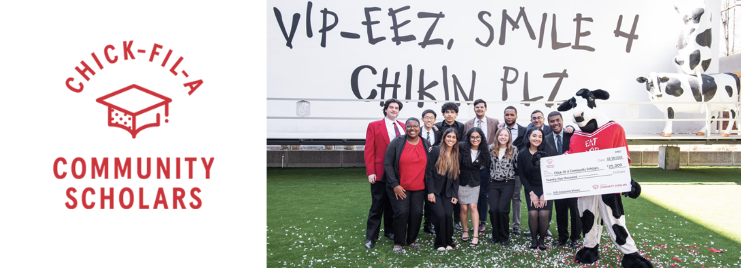 Every year, up to thirteen (13) $25,000 scholarships are awarded to students based on academic success, community service, and financial need. The Chick-fil-A Community Scholars will also participate in the Chick-fil-A Scholars Program, a one-year mentorship that includes leadership development alongside fellow scholarship recipients.